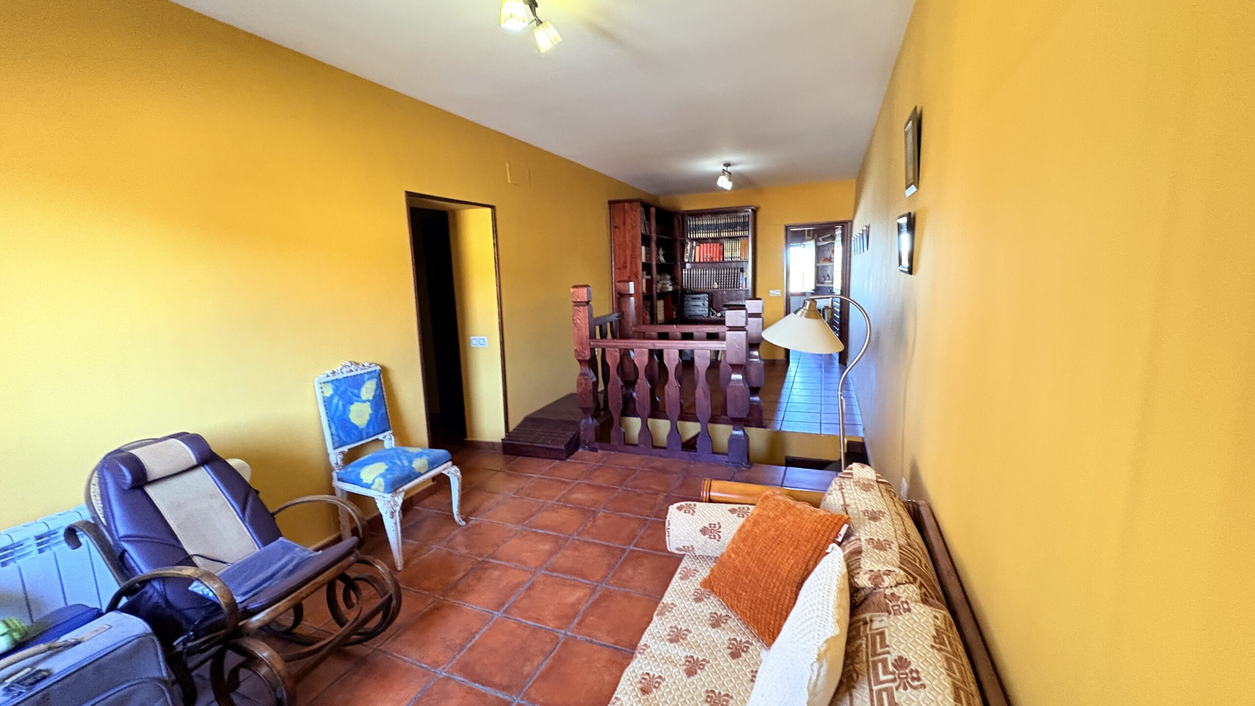 El acceso a un encantador jardín invita a relajarse y disfrutar del aire libre, mientras que la gran cochera con capacidad para dos coches añade comodidad a tu día a día. En la planta superior, encontrarás cuatro magníficos dormitorios, dos de ellos con armarios empotrados en madera, ideales para organizar tu espacio. Además, cuenta con un estupendo cuarto de baño y un amplio distribuidor equipado con sofás y una biblioteca, creando un ambiente acogedor y funcional.