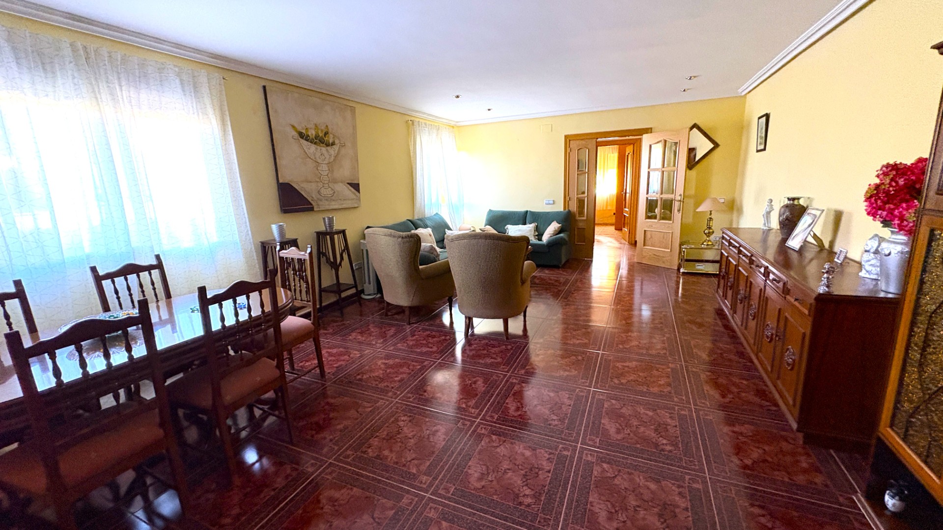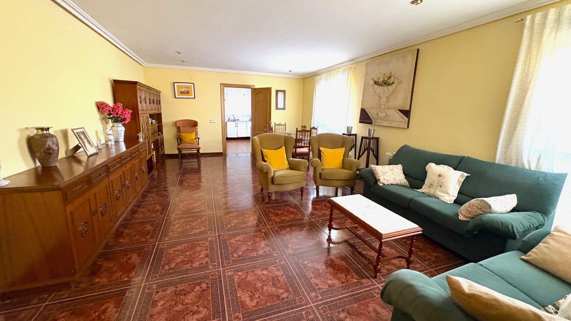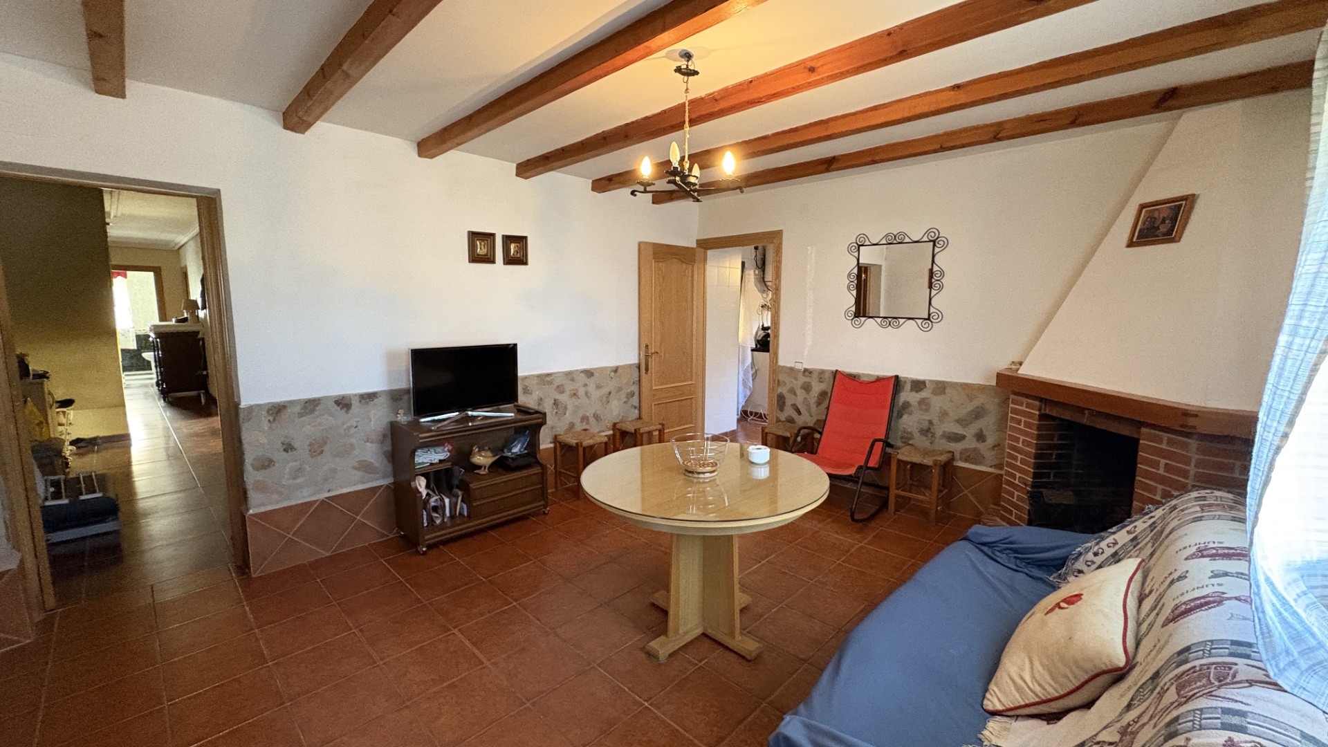 La vivienda, distribuida en planta baja, cuenta con tres grandes dormitorios y dos cuartos de baño, ideal para familias o grupos de amigos. Su gran salón iluminado es el lugar perfecto para compartir momentos inolvidables, mientras que la acogedora sala de estar con chimenea añade un toque cálido y hogareño. La cocina “campera” es un espacio funcional y acogedor, perfecto para preparar deliciosas comidas en compañía de seres queridos.